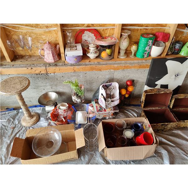 Huge Lot of Assorted Home Decor, Teapots, Glassware, Vases, Food Scale & More