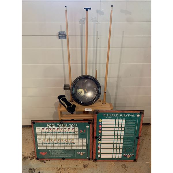 Pool Table Accessories Lot Cues Balls Clock Plus Much More