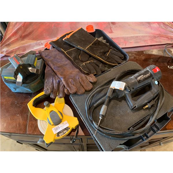 Rotozip Rebel Spiral Saw Bosch Laser Line Long Tape Measure and Welding Gloves