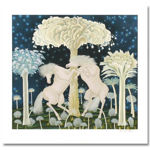 Lush Lava-flows of tropical colors characterize the works of Peruvian Artist JOSE CARLOS RAMOS. Coming of Age in the Early 1960`s, RAMOS embraced a variety of styles and techniques, carving a niche for himself with Japanese wood block printing, and redefining the richly colored themes of his Native culture. His numerous works have been exhibited in Top Museums and Collections all over the world, including the UNITED NATIONS - Ramos is truly a spokesman for his people.