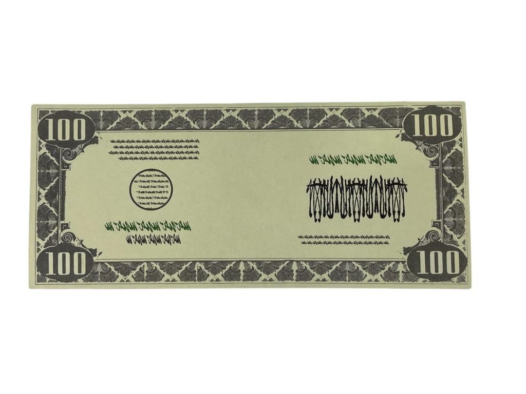 Original unburnt bank note from Joker burning the cash scene used in the production of 'The Dark Knight' (2008), the superhero movie where, when the menace known as the Joker emerges from his mysterious past, he wreaks havoc and chaos on the people of Gotham.
