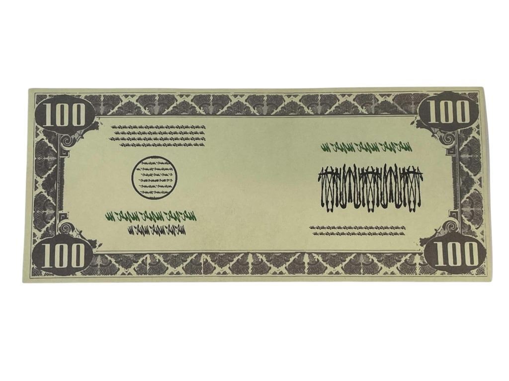 Original unburnt bank note from Joker burning the cash scene used in the production of 'The Dark Knight' (2008), the superhero movie where, when the menace known as the Joker emerges from his mysterious past, he wreaks havoc and chaos on the people of Gotham.