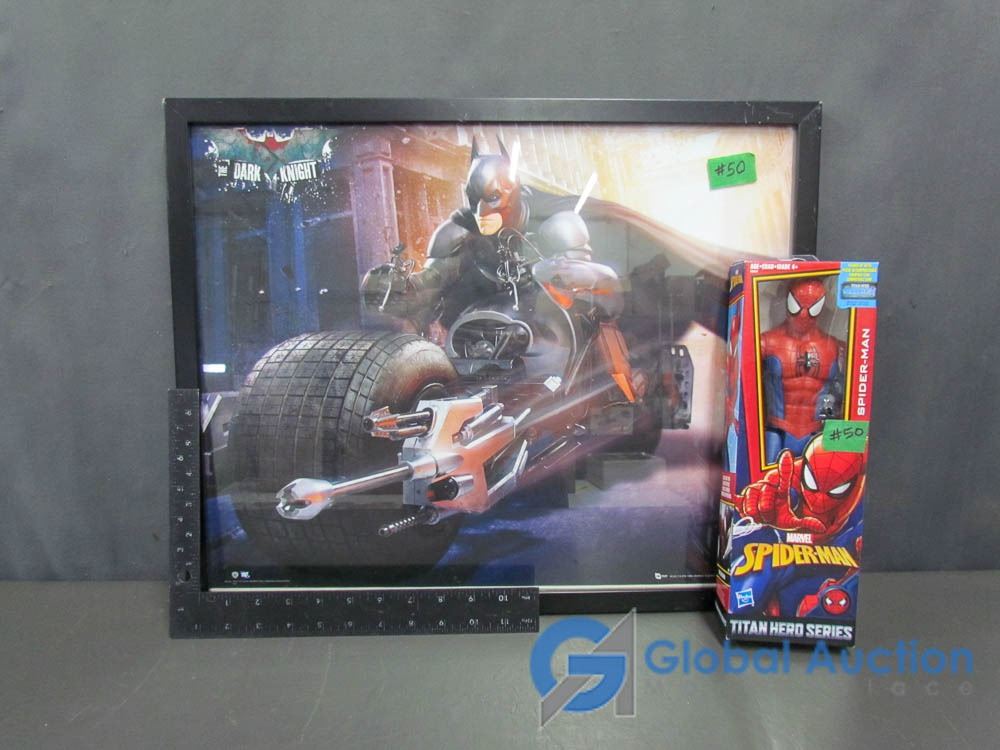 The Dark Knight Batman Framed Poster and Spider-Man Toy Figurine