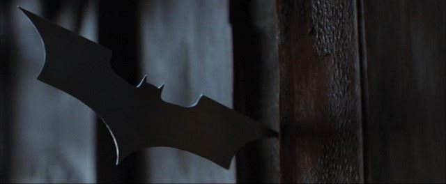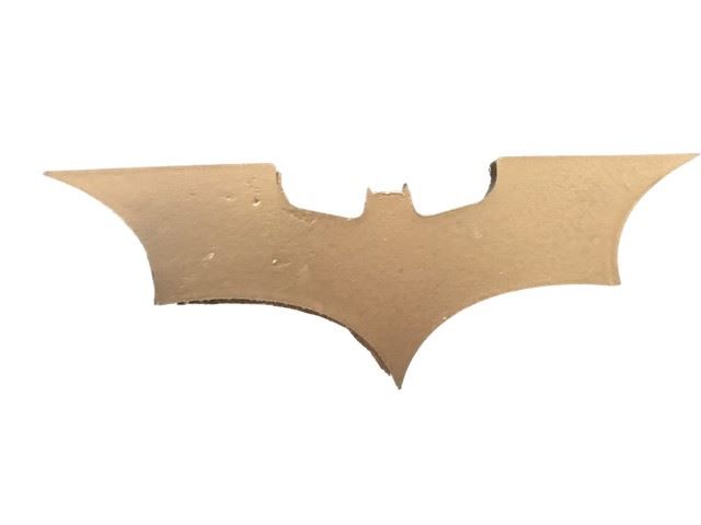 The Dark Knight (2008) – screen used stunt batterang. Measures 4"x 2" high. Made of gold finished resin.