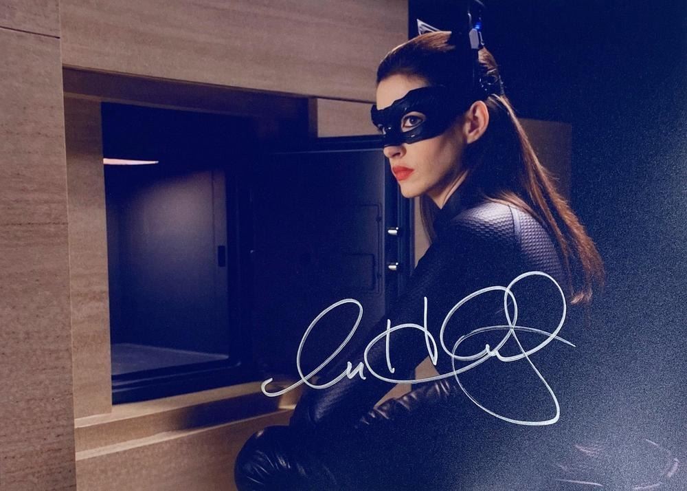 The Dark Knight Rises Anne Hathaway facsimile signedmovie photo. 8x10 inches. This item is a reprint of an original autograph