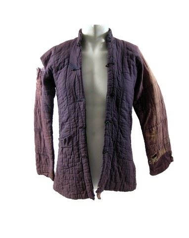The Dark Knight Rises screen worn Tunic. Aged and production worn with holes blue lone sleeve tunic directly from the production. Used extensively in the sequences where Christian Bale is imprisoned and attempts to escape. Acquired from production source.