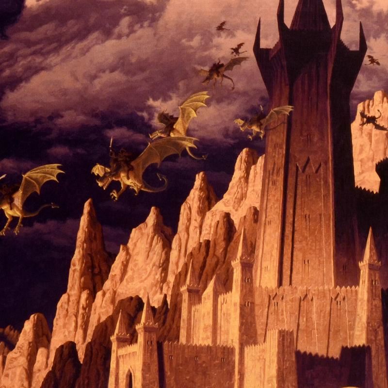 Known world wide for their fantasy and science fiction illustrations, identical twin brothers Greg and Tim Hildebrandt created an abundance of fascinating artwork, most notably their illustration work for J.R.R. Tolkien's 'The Hobbit' and 'Lord of the Rings'. "The Dark Tower", originally created in the 1970's for Ballantine Books, is a limited edition giclee on canvas, numbered and hand signed by Greg Hildebrandt! Includes Certificate of Authenticity! Measures approx. 28" x 21" (image).