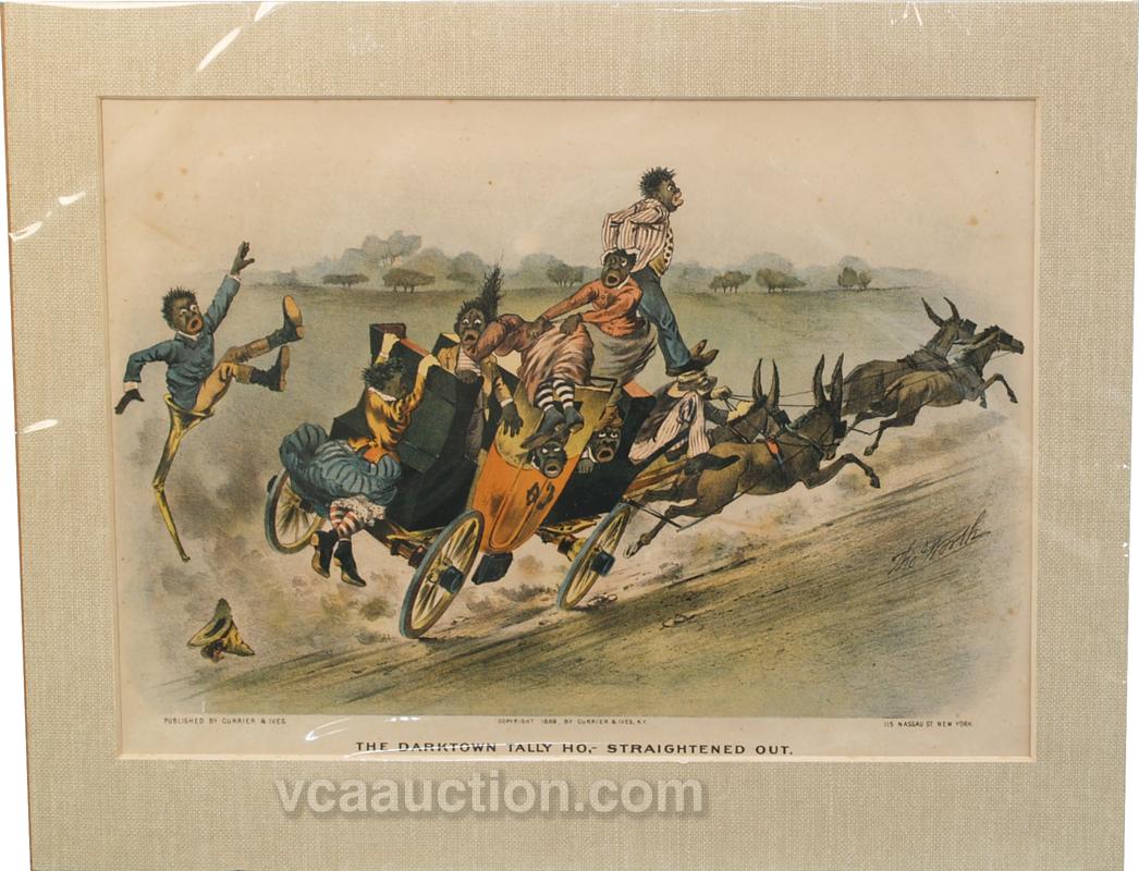 "The Darktown Tally Ho, - Straightened Out." Matted, Currier & Ives Print C. 1889 - 18" x 14"