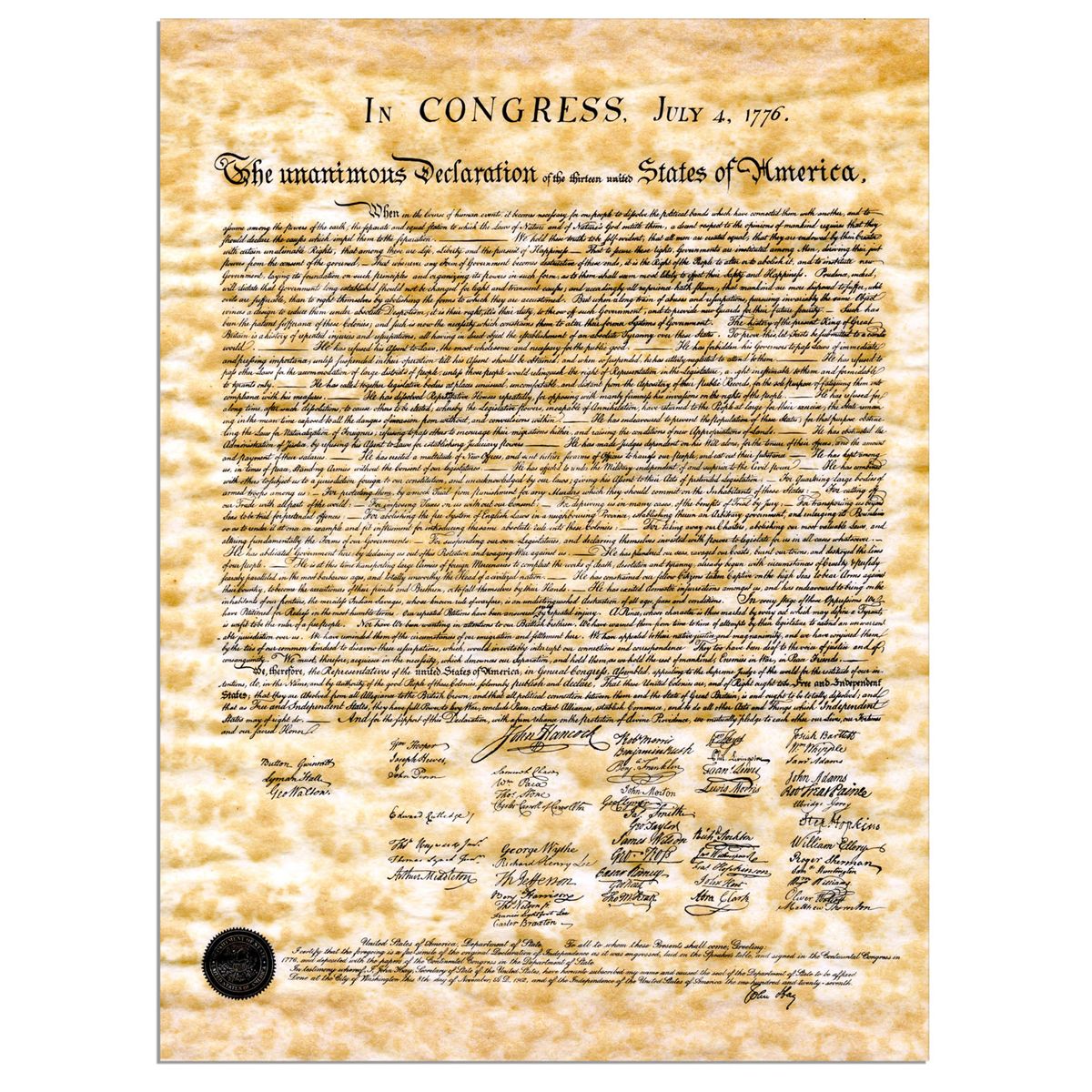 Twentieth-century printing of the John Hay Declaration of Independence, originally published in 1902. Hay was a close associate of Abraham Lincoln and as Secretary of State authorized the facsimile of the Declaration. Measures 11.75'' x 15.5'' on parchment paper, with a 1'' integral flap folded behind the top and bottom edges. Toning and buckling, overall very good condition.