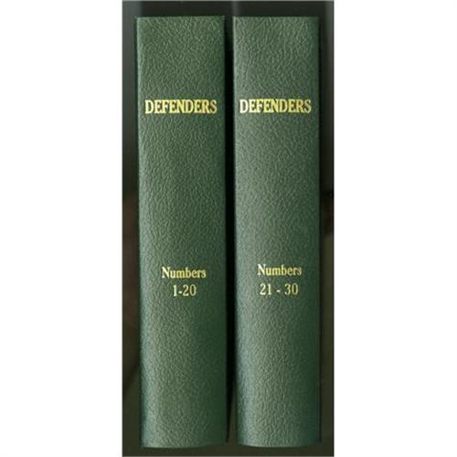 <B>The Defenders #1-30 Plus Bound Volumes (Marvel, 1974-75).</B></I> In addition to the aforementioned issues, these two hardcover volumes also contain <B>Giant-Size Defenders</B></I> #1-5, <B>Doctor Strange</B></I> #1-10, and <B>Giant-Size Doctor Strange</B></I> #1. Aside for cover creases on a couple of issues, the comics are in excellent condition. The titles and issue numbers are embossed on the spines, and the name of the previous owner is embossed on the covers of the volumes. All have been trimmed as part of the binding process. Overstreet VG 4.0 value for group = $240.