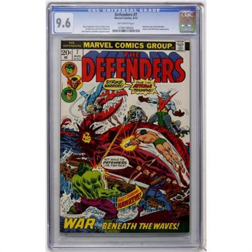 <B>The Defenders #7 (Marvel, 1973) CGC NM+ 9.6 Off-white pages.</B></I> Hawkeye joins the group. John Romita Sr. cover. Overstreet 2007 NM- 9.2 value = $30. CGC census 9/07: 17 in 9.6, none higher. <I> From the Fantastic Frank Collection.</B></I><BR><BR><b>Shipping:</b> Comics - Slabbed (certified) (<a target="_blank" href="http://www.heritageauctions.com/common/shipping.php">view shipping information</a>)