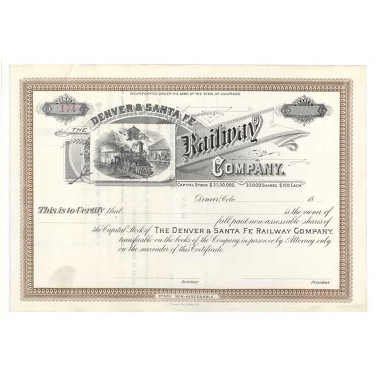 18--, Colorado. Unissued stock certificate. Brown / White. Vignette of a locomotive at a switchback at top left.