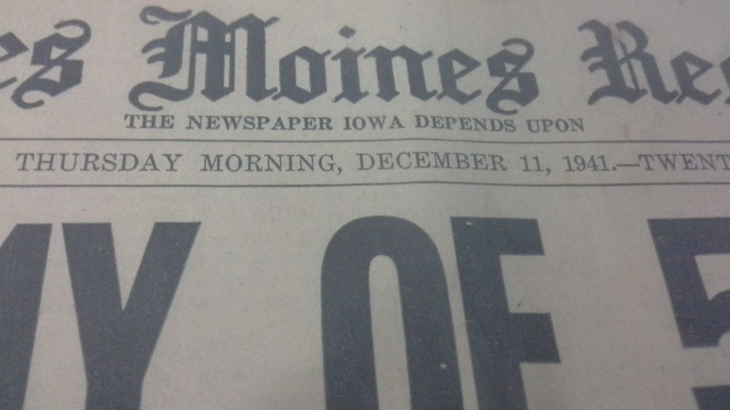 The Des Moines Register Newspaper (Dec. 11, 1941)