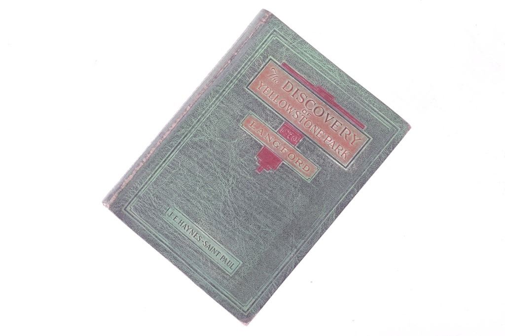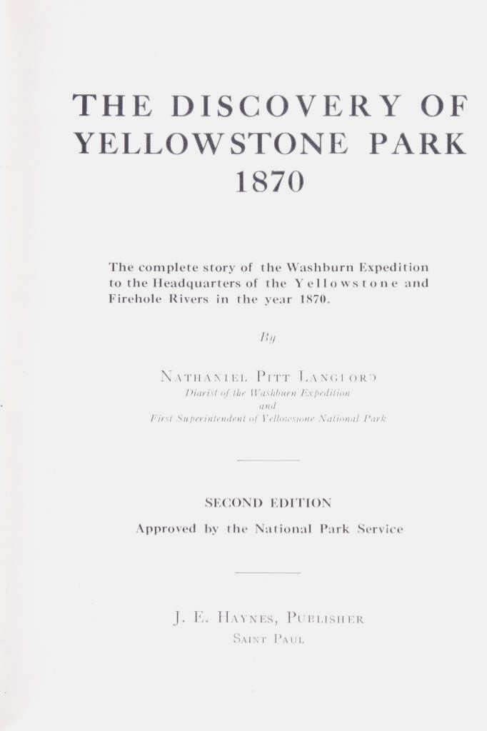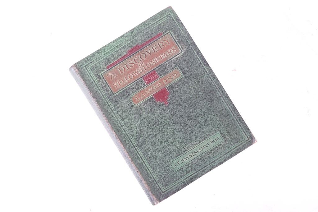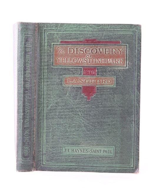 For your bidding pleasure is this The Discovery of Yellowstone Park by Langford 1870. This is a scarce "The Discovery of Yellowstone Park 1870" by Nathaniel Pitt Langford. The book was published by J.E. Haynes in 1923. The book tells the story of the Washburn Expedition in 1870 and features many illustrations, photos, and maps. The book was written by N.P. Langford who was the diarist for the expedition and the first superintendent of Yellowstone. The book is in good condition with the green leatherette covers. This is a second edition of the book; 1923. The book measures 5" x 7".