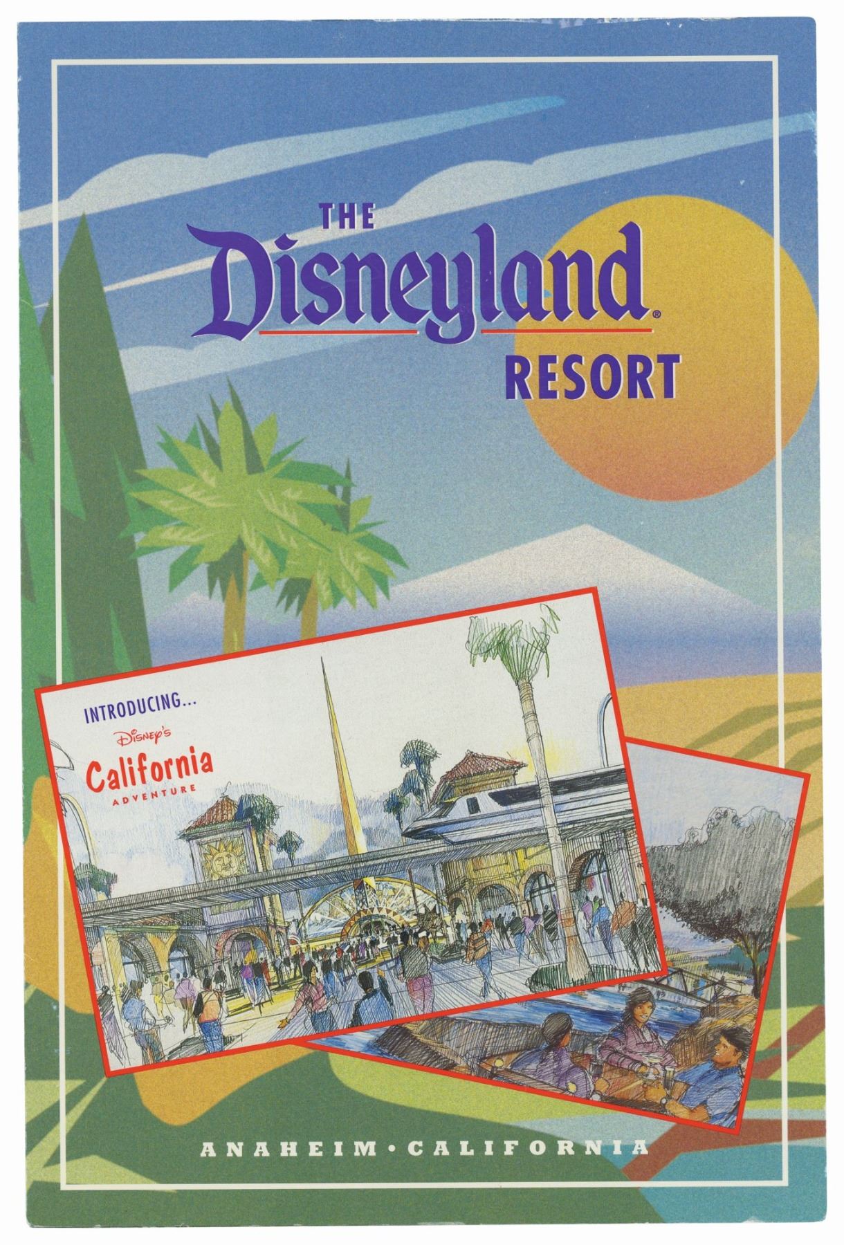 (California Adventure, c.1997) A colorful brochure from The Disneyland Resort introducing Disney's California Adventure. This brochure features wonderful concept art and information about The Disneyland Resort expansion and how it would contribute to the economic growth of Anaheim and the region. Measuring 12"x24" when unfolded, the brochure is in very good condition with minor edge-wear from use.