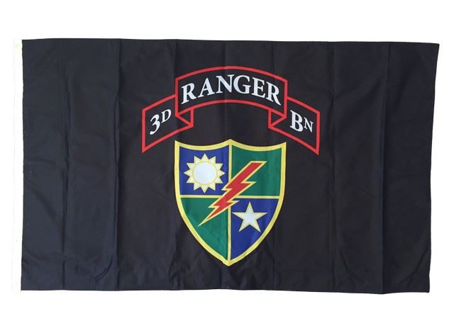 Screen used, "3rd Ranger Bn" nylon flag with black, red green white and yellow with design.(60x35)