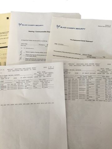Jackson Briggs (Channing Tatum) Screen used, pre deployment paper work from doctors and dentist, health release forms, imunization form, copies of drivers license, passport, and health assessment. (11x9).