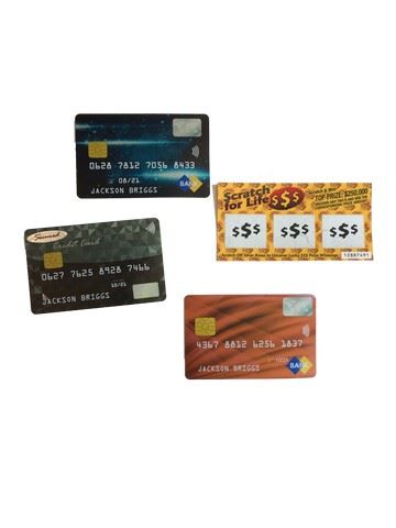 Jackson Briggs (Channing Tatum) screen used, 3 credit cards, and a scratcher lottery ticket . (4x2)