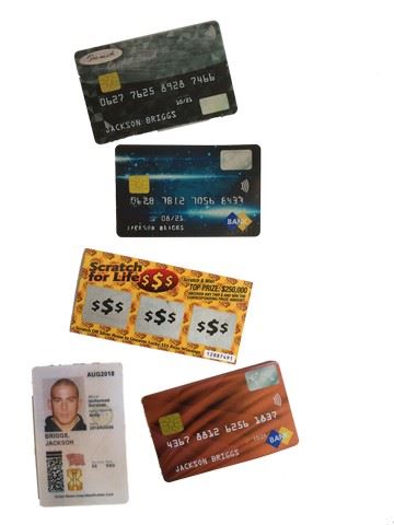 Jackson Briggs (Channing Tatum) Screen used, 3 credit cards, scratcher lottery ticket and army id card. (4x2)