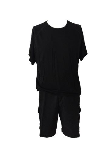 Noah (Ethan Suplee) screen worn, hero, black (Smartwool) t-shirt (xl), black (Goodfellow) cargo shorts. (38), green (Saloman) shoes (14).