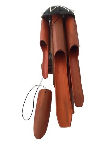 Screen used, bamboo wind chime, stained red bamboo with a black bamboo top that has a string accent design. (17x5).