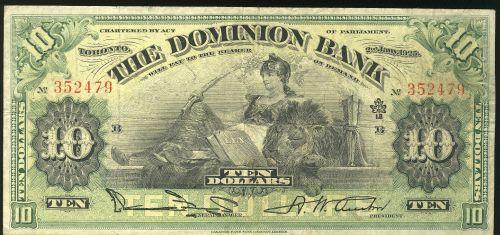 The Dominion Bank $10 1925 352479 Lovely vignette. "Austin, right" CH-220-18-10 about VF.