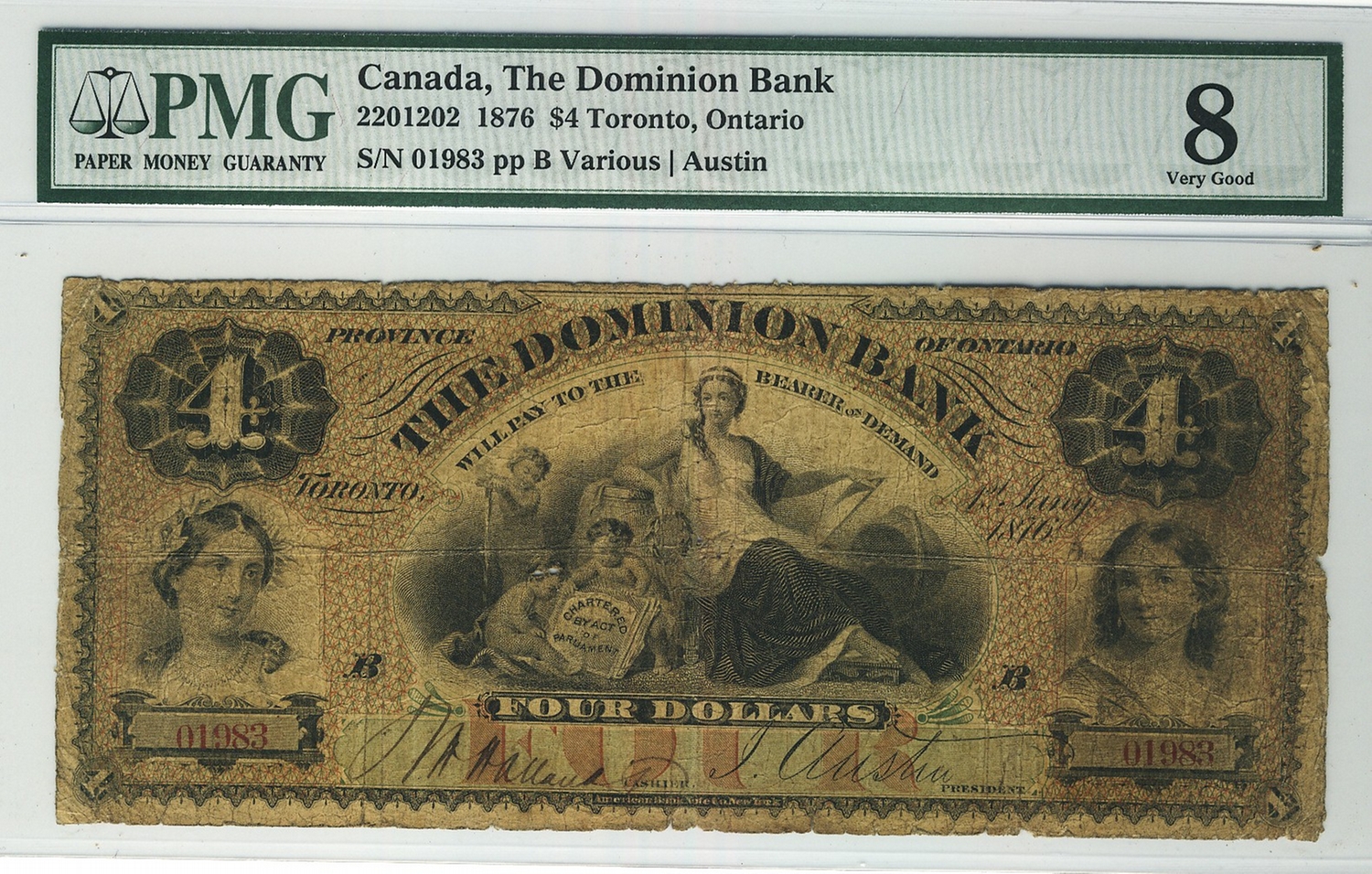The Dominion Bank 1876 $4 01983 CH-220-12-02 PMG VG8