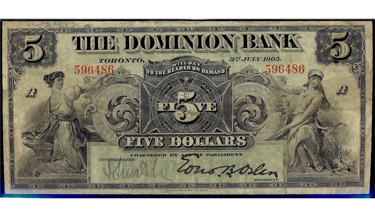 The Dominion Bank 1905 $5 #596486 CH-220-16-08 PMG VF25.