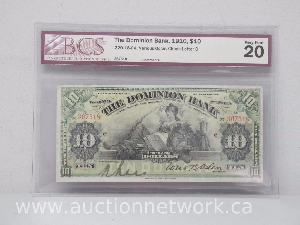 The Dominion Bank 1910 $10 Note Various-Osler, Check Letter C *BCS VERY FINE 20* RARE