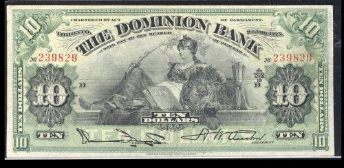 The Dominion Bank 1925 $10 239829 CH:220-18-10 A clean VF. Popular note!