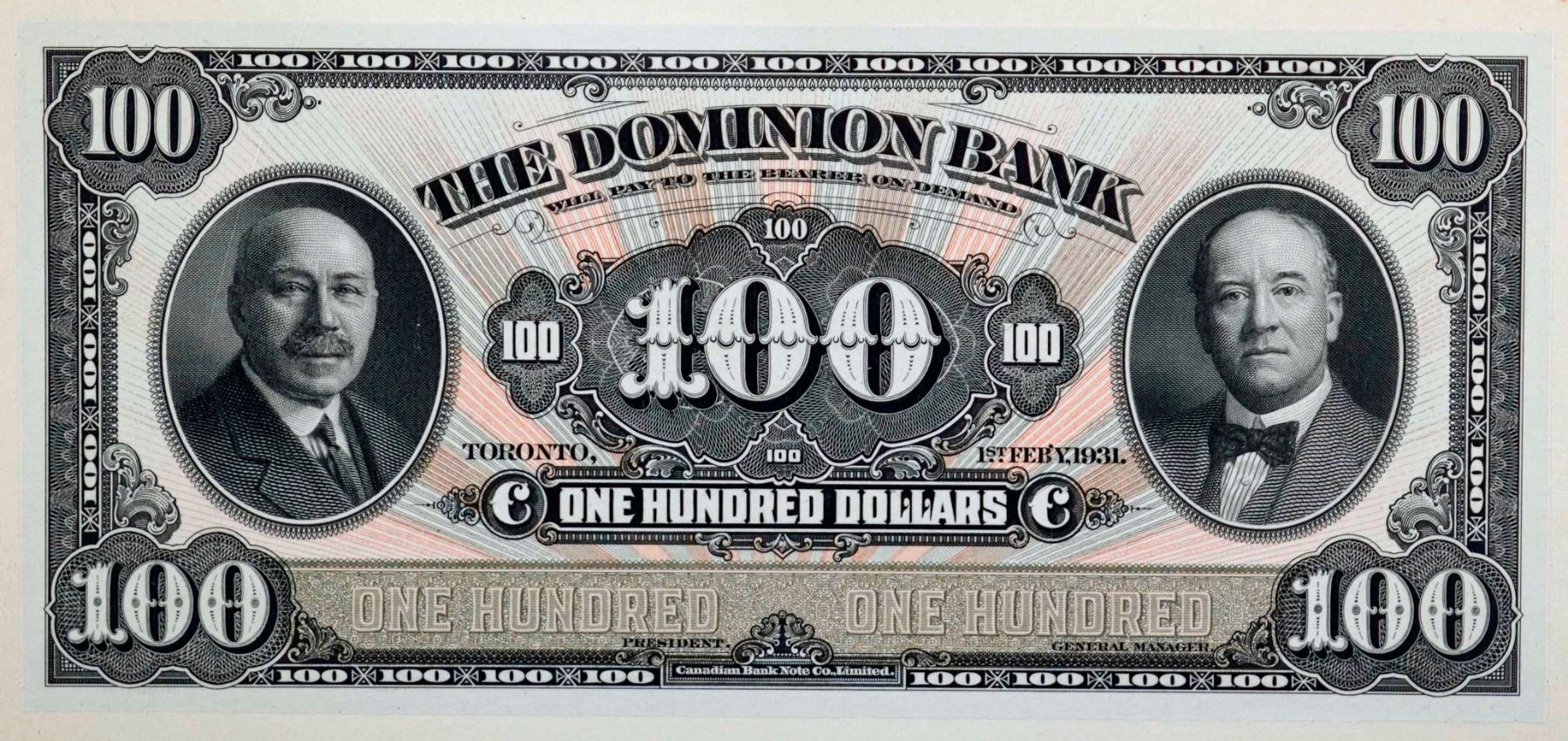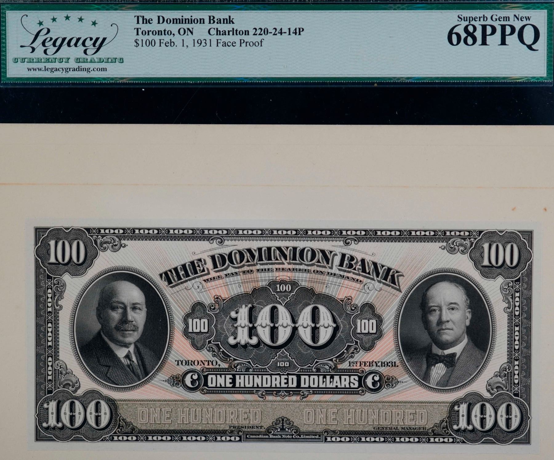 The Dominion Bank 1931 $100 CH-220-24-14FP, Legacy Currency Grading Superb Gem Uncirculated-68PPQ.