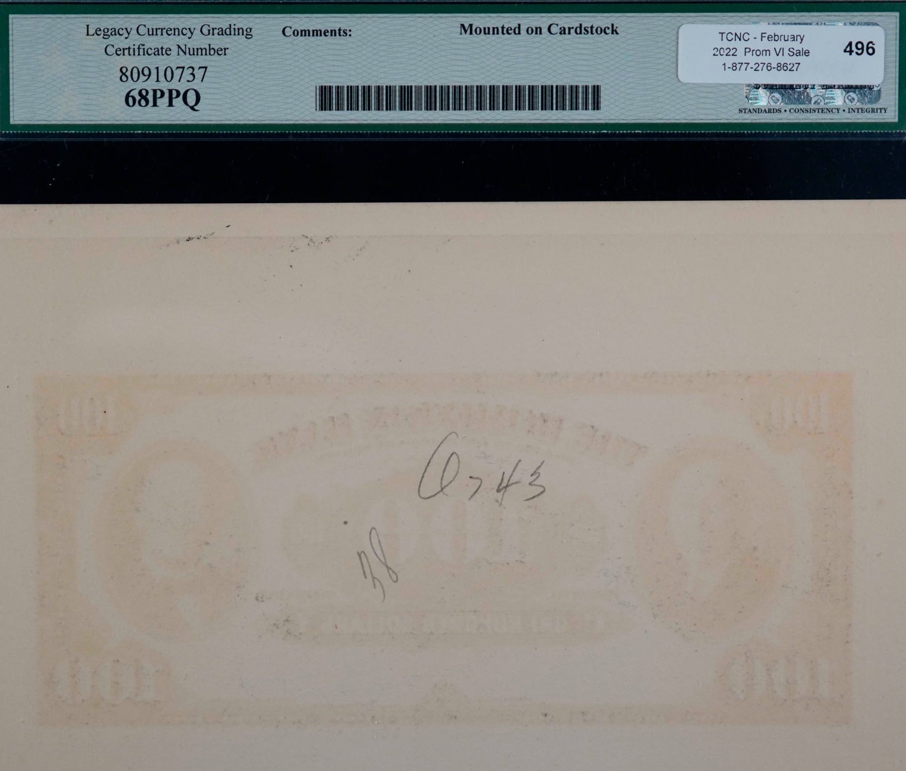 The cataloguer has taken every reasonable measure to ensure that all of the lots in this sale are as described and genuine. All raw coins and banknotes have been graded by the cataloger or the auction house which represent our best professional opinion. To grade coins and banknotes, we use Canadian grading standards, 42 years of experience and good conscience. However, grading is a subjective description in the opinion of the cataloger or the auction house. Among experts there are often differences of opinion on the grading and the eye appeal of a coin. The strike and the state of preservation are often debated. The Canadian Numismatic Company acts as an agent between consignors and buyers. The Canadian Numismatic Company does not guarantee that any coin or banknote cataloged will meet the standards, or the grade, of any third party grading companies. No warranty, whether impressed or implied. Items are as is, no warranty given. We cannot accept responsibility and waive all liability resulting in financial losses, and or incidentals accruing from the sale of any items, nor can we guarantee that items graded by third party services will grade the same if submitted to a different grading service or re-submitted to the same company. Statements by The Canadian Numismatic Company regarding the condition, the eye appeal, the strike and the population of items are for guidance only. All lots offered are sold "AS IS". Title to all lots remains with the auction house until paid for in full by the purchaser. But they are held at the risk of the purchaser once the time of the sale.