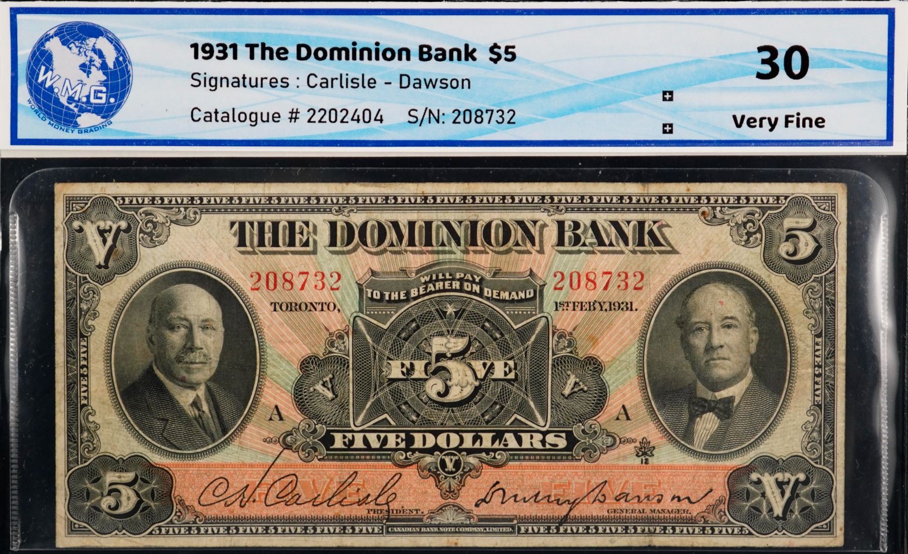 The Dominion Bank 1931 $5 #208732 CH-220-24-02 WMG Choice Very Fine-30