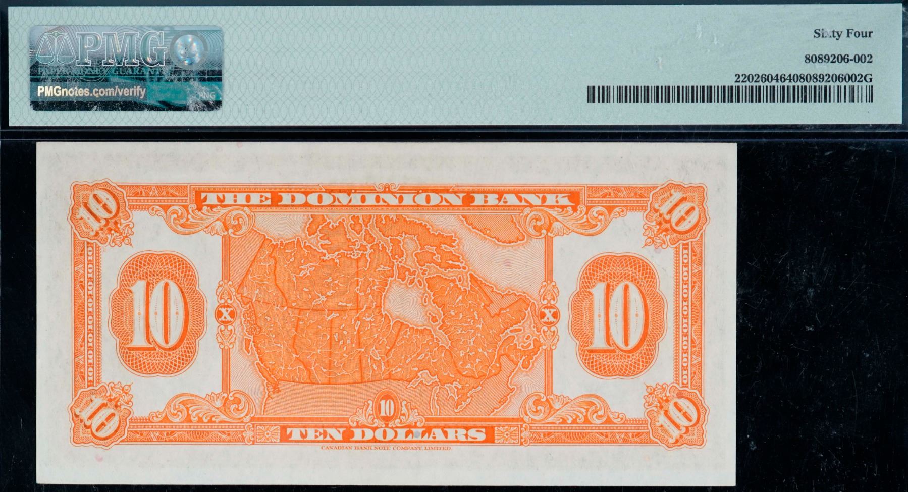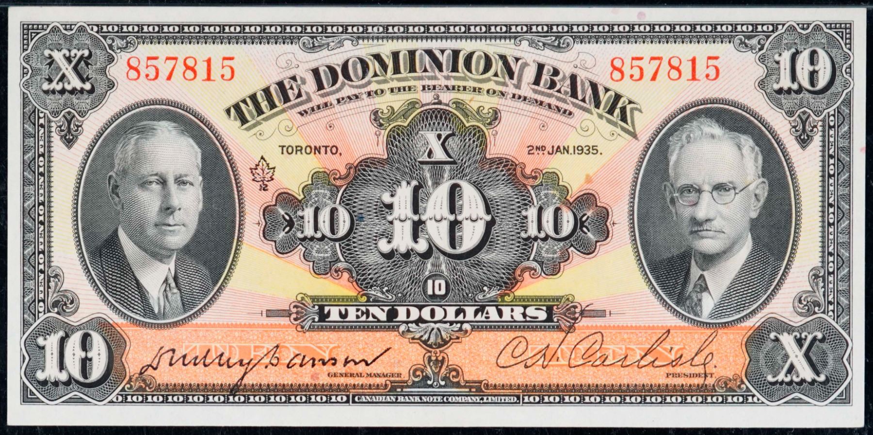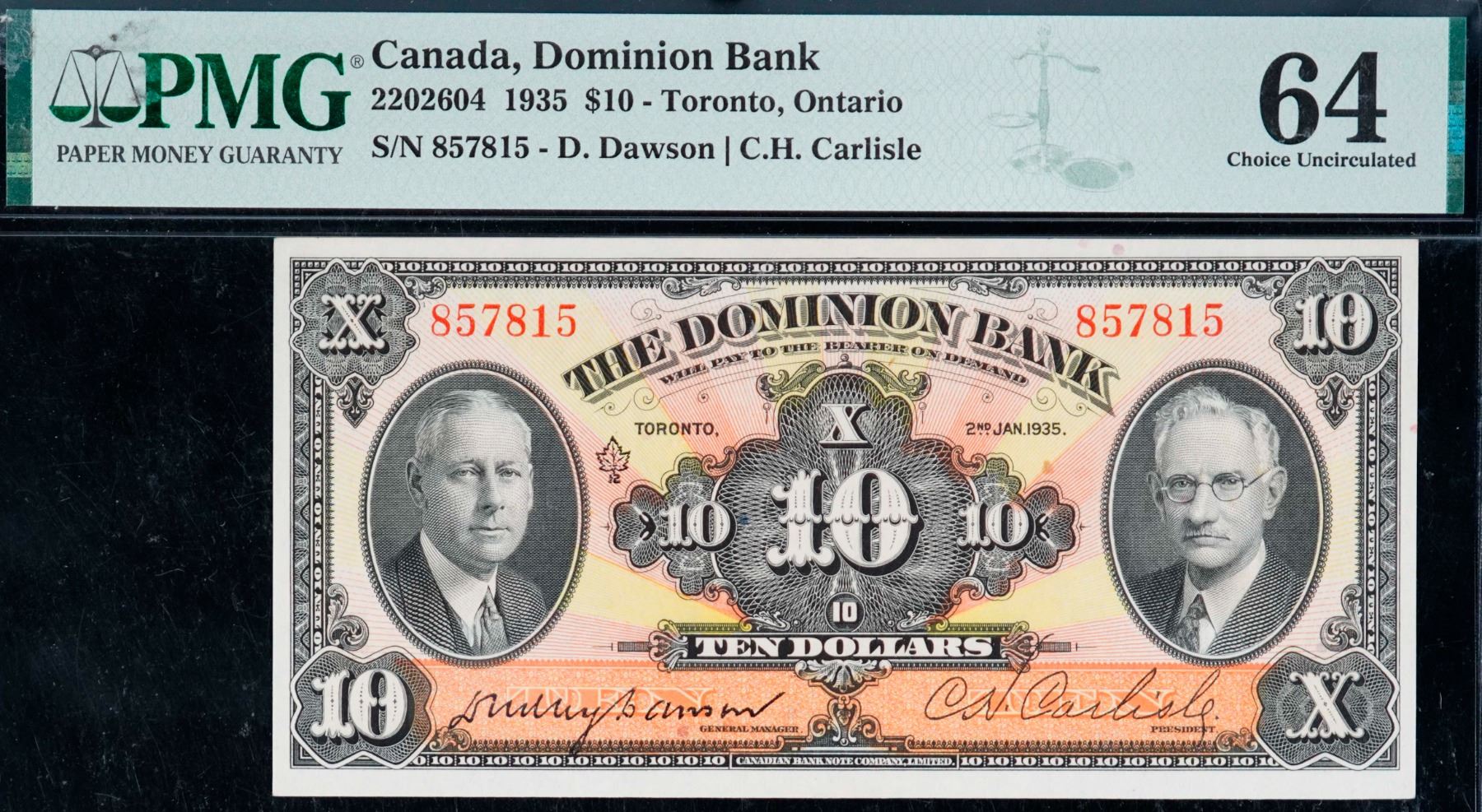 The Dominion Bank; 1935 $10 #857815 CH-220-28-02, PMG Very Choice Uncirculated-64EPQ.