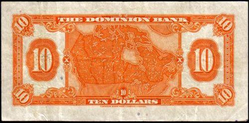 The Dominion Bank 1935 Ten Dollars CH 220-26-04, serial number 465537, VF-EF