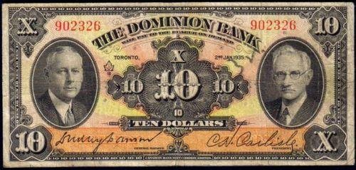The Dominion Bank 1935 $10, VG-Fine