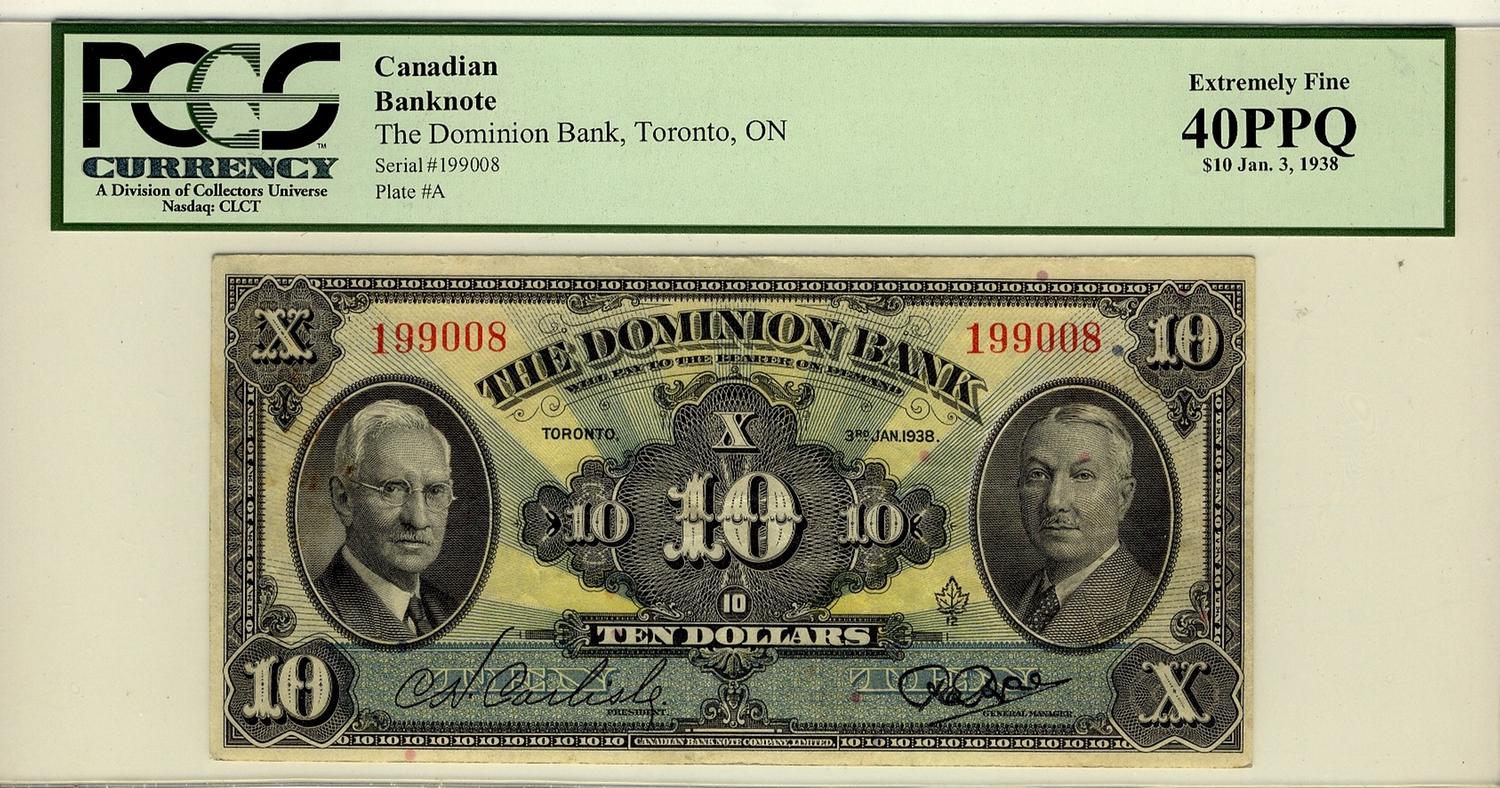 The Dominion Bank, 1938 $10 #199008, CH-220-28-04, PCGS EF40PPQ.