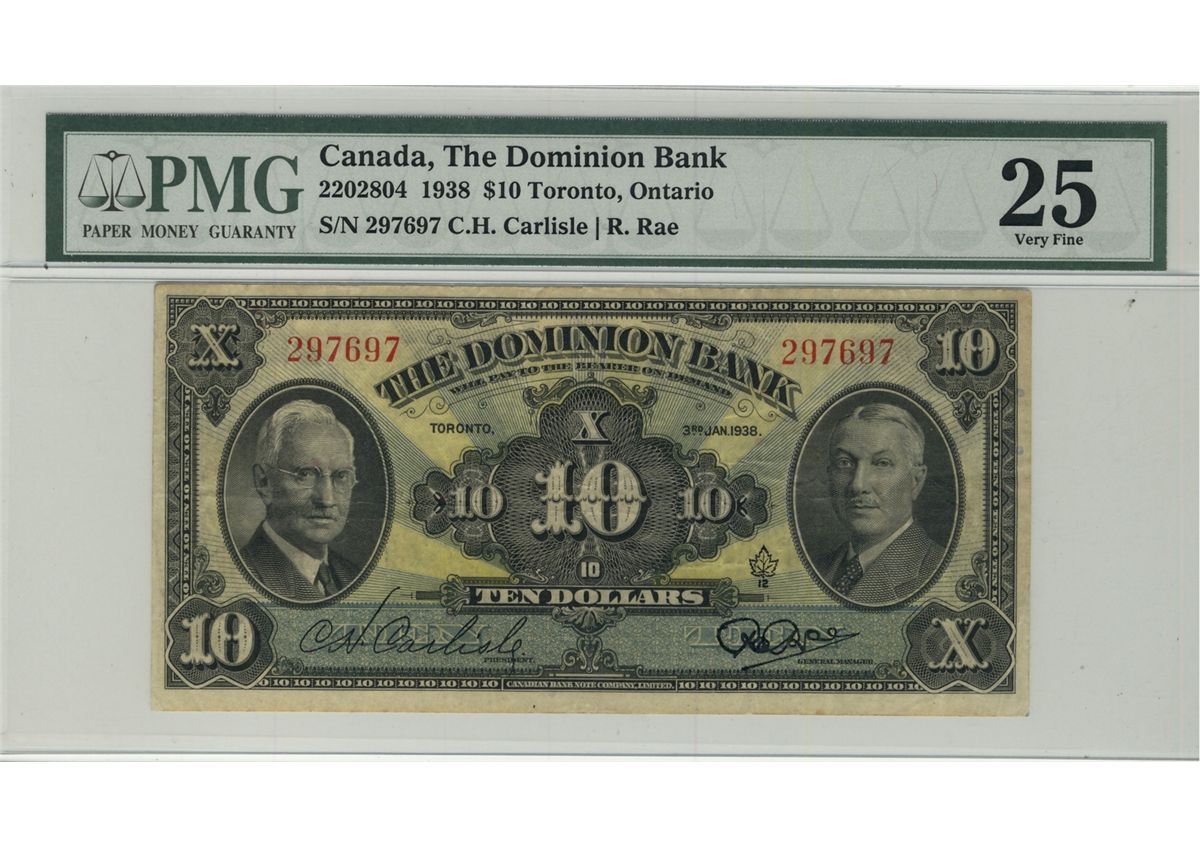 The Dominion Bank; 1938 $10 #297697 CH-220-28-04 PMG VF25.