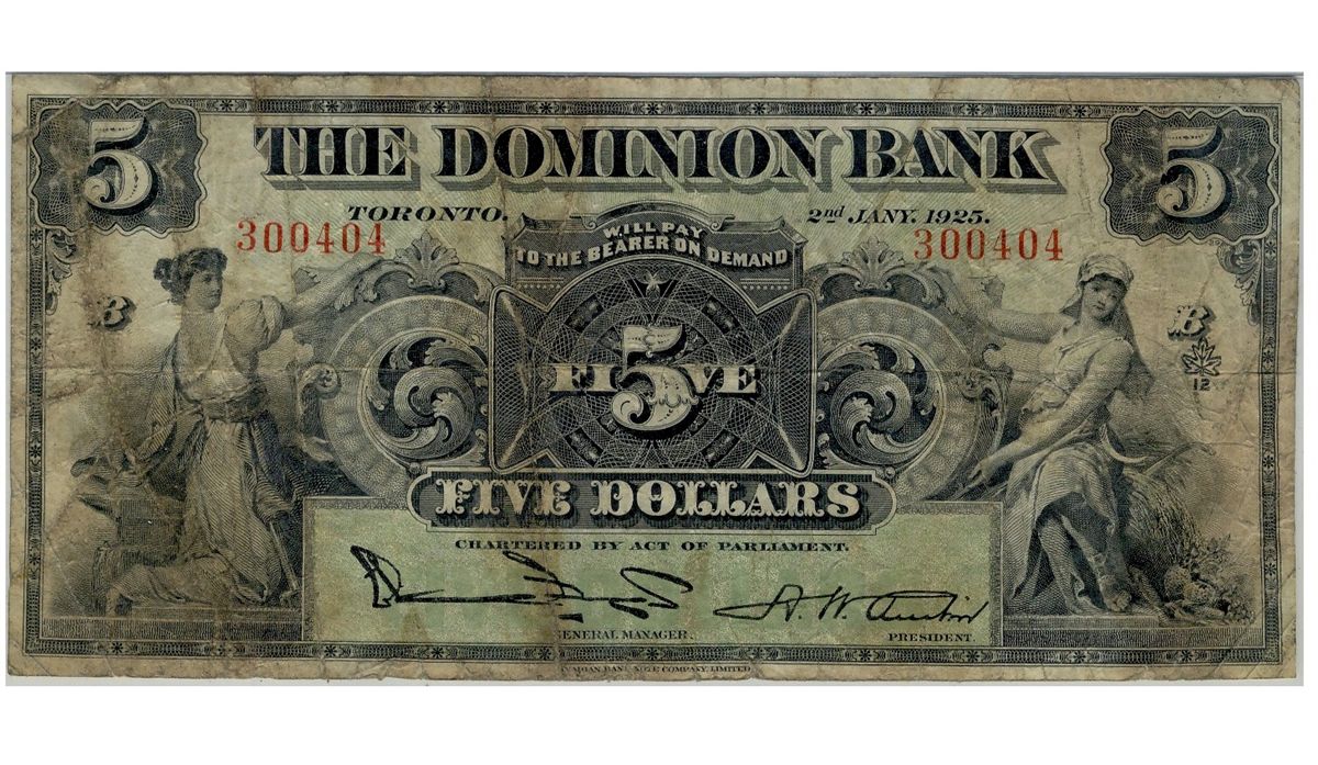 The Dominion Bank of Canada; 1925 $10 #300404 CH-220-16-14 PMG VG10.