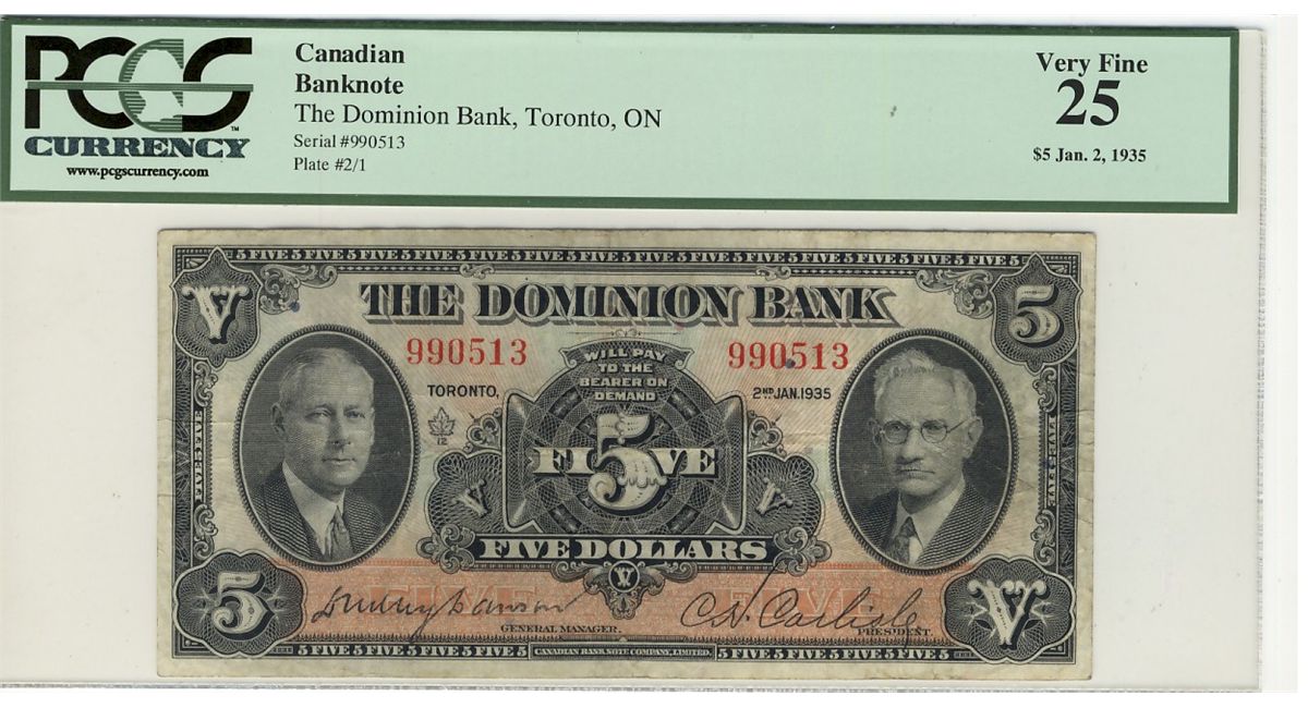 The Dominion Bank of Canada 1935 $5 #990513 CH-220-26-02 PCGS VF25.