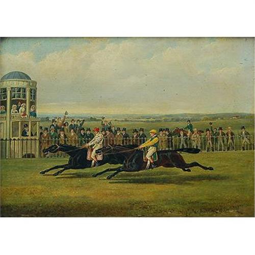 In 1850 Voltiguer won the Derby, the St leger and Doncaster Cup, a considerable feat of stamina as well as sped. Voltiguer started at 16-1 in the Derby and won comfortably from Pitsford. The paintings show a duel between two derby winners, Voltiguer and Lord Eglington's Flying Dutchman which had won the Derby in 1849.