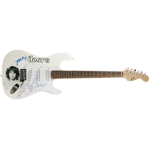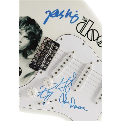 <B>The Doors Autographed Guitar.</B></I> A cream-colored Eleca six-string electric decorated with band logo and photo of Jim Morrison, and signed by Ray Manzarek, John Densmore, and Robby Krieger in blue marker. In Excellent condition.<BR><BR><b>Shipping:</b> Musical Instruments, Large (<a target="_blank" href="http://www.heritageauctions.com/common/shipping.php">view shipping information</a>) <BR><BR><B>Important notice: