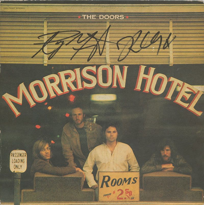 Morrison Hotel album signed on the front cover in black felt tip by Ray Manzarek and Robby Krieger. In fine condition. The record is included.