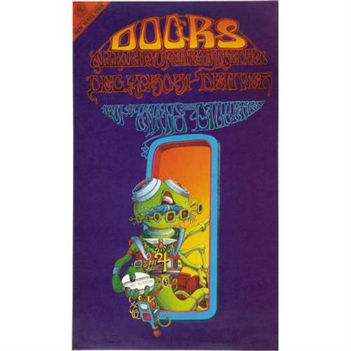 <B>The Doors "Pay Attention" Denver Concert Poster FD-D18 (Family Dog, 1967).</B></I> Also known as "The Space Man," this wonderful Rick Griffin-designed poster is a collector's favorite, and the image of the weird, green-skinned alien has been used many times since in books and album covers. This is the hard-to-find original first printing, with the red corner triangle and deep purple background. The poster measures approximately 12.5" x 21.25", and is in beautiful NM condition.<BR><BR><b>Shipping:</b> Flat Material, Large (<a target="_blank" href="http://www.heritageauctions.com/common/shipping.php">view shipping information</a>)