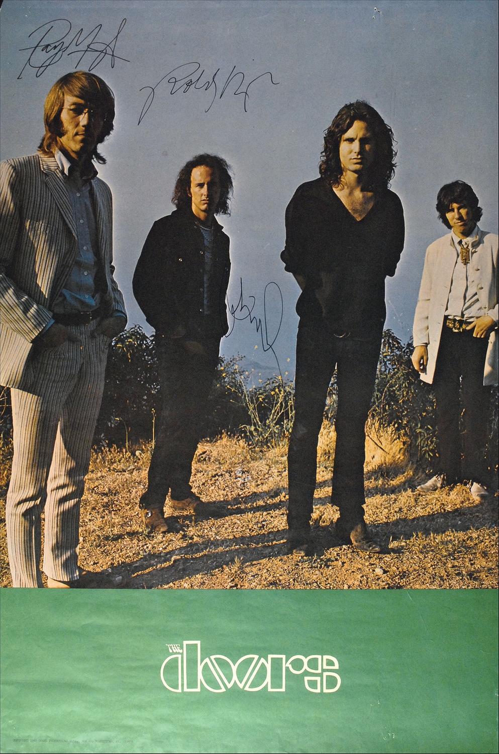Color 24 x 36 poster of the band posing outside, signed in black felt tip. Rolled and in fine condition, with some scattered light creases and edge dings.