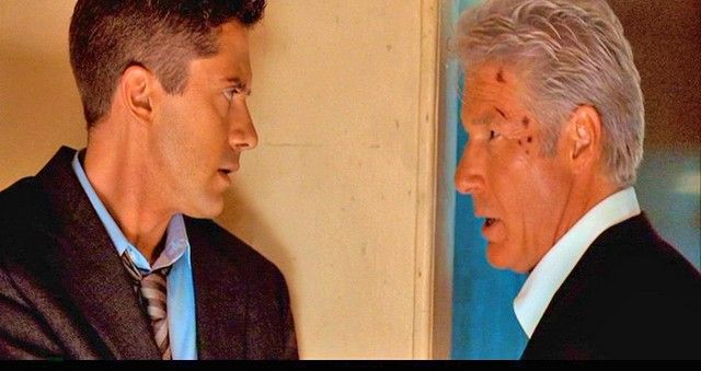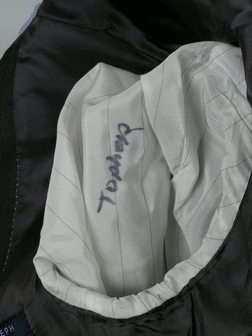 From the political-thriller "The Double" (2011), about a retired CIA agent (Richard Gere), and a young ambitious FBI agent (Topher Grace), who are teamed up to solve a senator's murder, this is Ben Geary's (Topher Grace) hero screen used wardrobe. It Includes a "Nordstrom" blue button front, collared long sleeve dress shirt (14 1/2 - 33), a "Joseph Abound" two piece grey suit with two-button single breasted jacket (36r/30w), a "Boss" brown and tan diagonal striped tie, and "Cole Haan" black leather belt. Original production wardrobe tag is included.