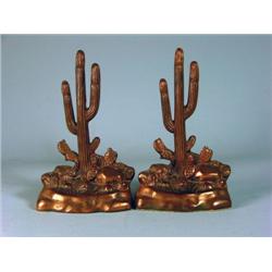 Cactus Bookends, copper oxidized. Excellent condition. 7 inches tall.