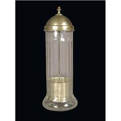 Straw Holder Tin and Glass, patent August 22, 1915. No chips or cracks. 12 1/2 inches tall.