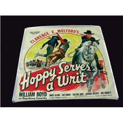 Western Movie Poster-Clarence Mulfords, Hoppy Saves A Writ, starring William Boyd as Hop A Long Cassidy. Great graphics and color, linen backed, six s