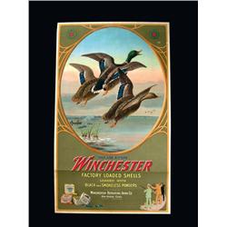 1904 Winchester Poster for factory loaded shells. Depicting three flying ducks, framed and matted. Minor horizontal creases otherwise excellent condit